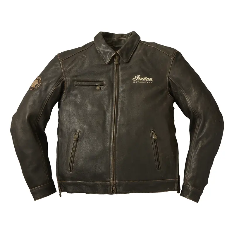 Men S Leather Classic Riding Jacket With Removable Lining Dark Brown Indian Motorcycle