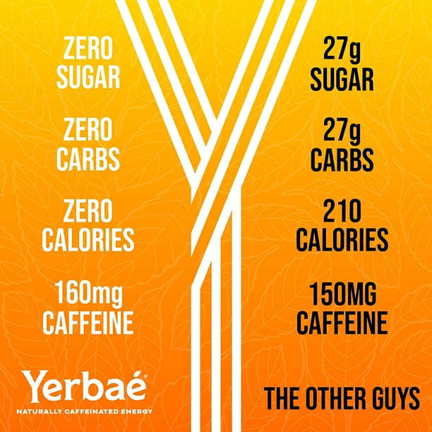 Yerbae Energy Beverage Mango Passion Fruit 0 Sugar 0 Calories 0 Carbs Energized By Yerba Mate Plant Based Healthy Alternative To Sugary Energy Drinks 16oz Cans 12 Pack Walmart Com